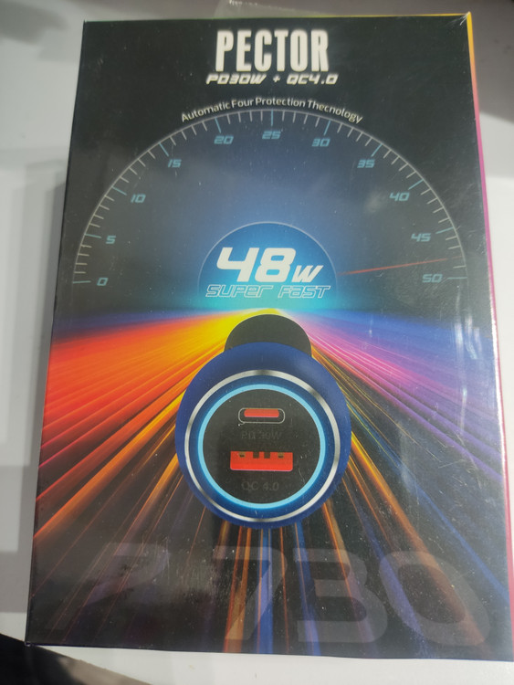 شارژر فندکی سوپر فست شارژ pector با ۲خروجی pd30W و usb qc4.0 فلزی دوام و کیفیت بالا